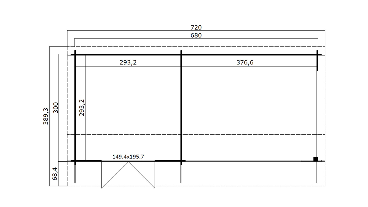 Dřevěná chatka NEW YORK: 300×300 cm + 380 cm terasa