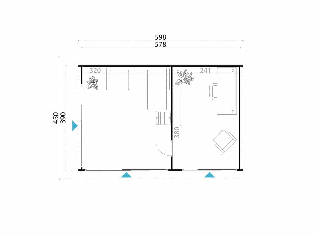 • Dveře: 2x 303 x 202 cm posuvné s dvojitým sklom,