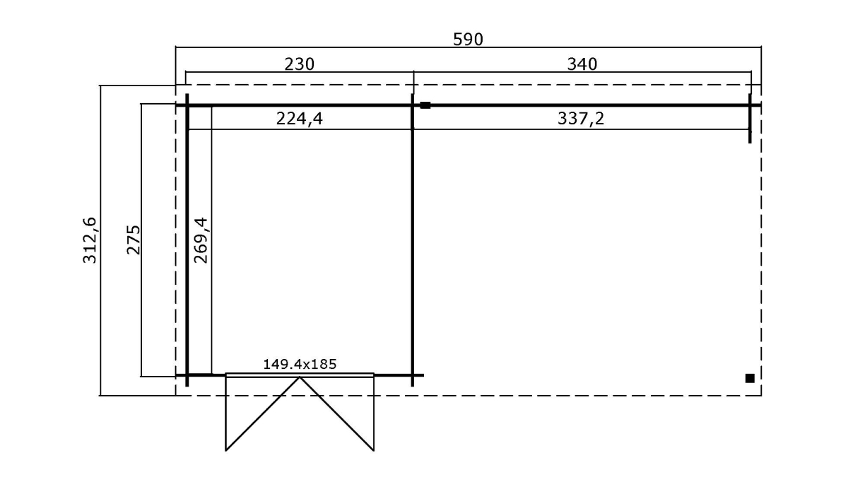 Rozměr: 224×269 cm + 337 cm terasa