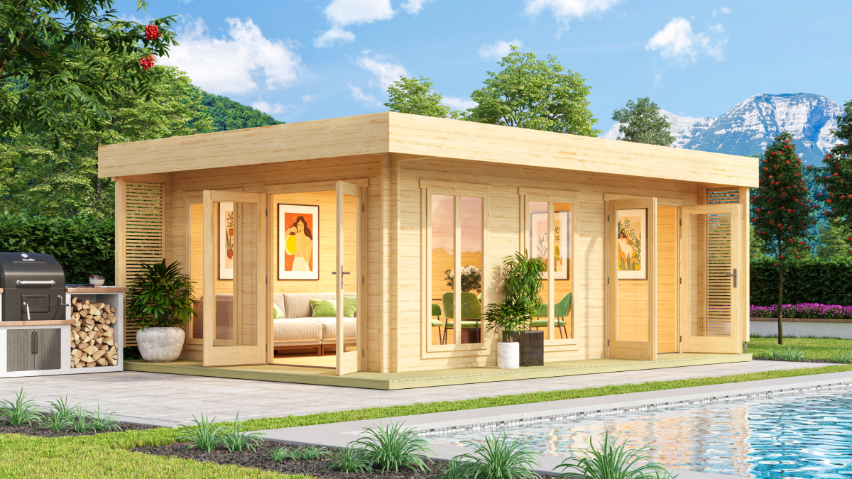 Velmi rozšířený typ dřevěných zahradních domků, který kromě úschovy zahradního vybavení (židle, stoly) slouží často jako místo k odpočinku na vaší zahradě.